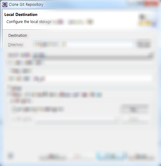 5. Git저장소 위치 설정 후 (보통 자동 설정되어있음) Finish